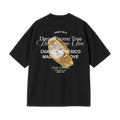 La camiseta esta confeccionada con algodón de lujo de peso medio y tiene un ajuste ligeramente grande.
